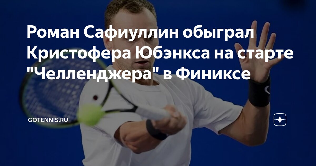 Российский теннисист, 69-я ракетка мира, Роман Сафиуллин успешно начал свое выступление на турнире серии ‘Челленджер’ в Финиксе (США). В стартовом матче Сафиуллин одержал победу над американцем Кристофером Юбэнксом, занимающим 104-е место в мировом рейтинге.